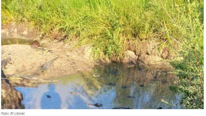 La fotógrafa Alejandra Boloqui es la autora de las fotos tomadas en la Reserva Don Luis, Cambyretá, Esteros del Iberá, donde pueden observarse a un grupo de carpinchos y yacarés compartiendo un pequeño charco de agua sin otras posibilidades de enfrentarse a el extremo calor y la sequía.