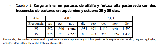 Invernada: Número de novillitos que ganan 900 g/día y que cuentan con una pastura de alfalfa y festuca alta, ya establecida, promedio de ecotipos de festuca alta y grupos de reposo de alfalfa con un adecuado balance de especies.