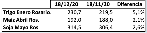 Qué pasó con el precio de los granos… (Cotizaciones MATBA/Rofex, posiciones cosecha en US$/Tn.)