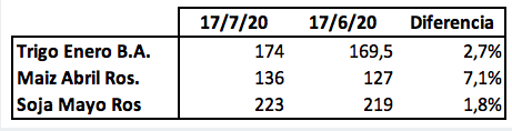Qué pasó con el precio de los granos a futuro (Cotizaciones MATBA/Rofex, posiciones cosecha en U$S/Tn)