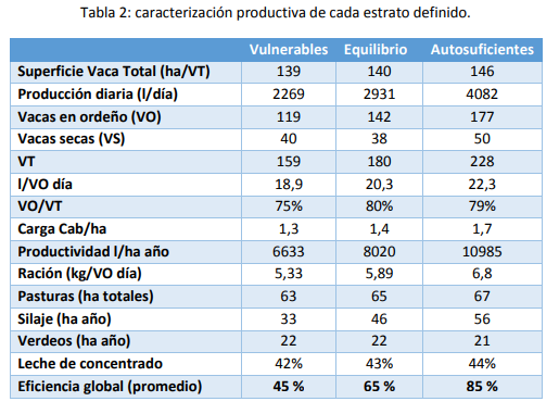 Durante las entrevistas también se relevó información productiva que sirvió para caracterizar productivamente cada estrato. En la tabla 2 se presenta dicha caracterización..