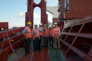 Durante la carga estuvieron presentes el secretario de Agricultura, Ganadería y Pesca, Guillermo Bernaudo; el presidente de la Delegación Argentina de la Comisión Administradora del Río Uruguay (CARU), Mauro Vazón; el delegado de la Comisión Administradora del Río Uruguay (CARU), Juan Enrique Ruiz Orrico; y el presidente del Instituto Portuario Provincial de Entre Ríos, Carlos Schepens.