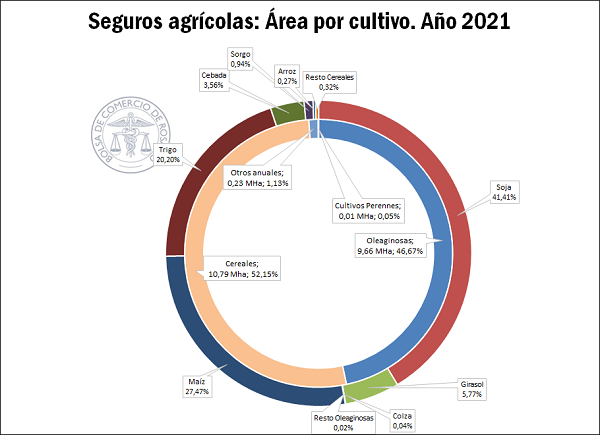 En el ejercicio económico 2021, se emitieron en nuestro país $ 28.303.765 millones en primas en seguro agrícolas, abarcando un área productiva cubierta de 20,7 millones de hectáreas.