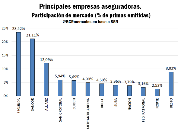 La cantidad de empresas aseguradoras autorizadas a operar en el mercado argentino al 30 de junio de 2021 fue de 191. De éstas, 28 operan el rubro de Seguros Agropecuarios y Forestales, representando el subsector el 2,7% de las primas emitidas del mercado asegurador. A pesar de la multiplicidad de empresas, el mercado se encuentra relativamente concentrado, con las tres principales entidades del rubro cubriendo el 56,7% del total de las primas emitidas.