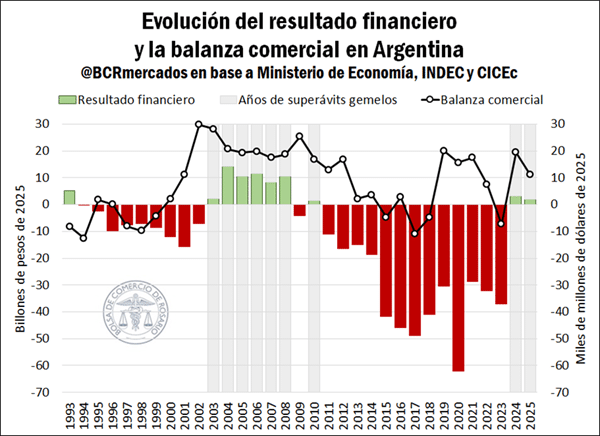 Durante 2025, Argentina alcanzó nuevamente un doble resultado positivo en sus cuentas macroeconómicas: superávit fiscal y superávit comercial. Se trata del segundo año consecutivo con ambos indicadores en terreno favorable, algo que no ocurría desde el período 2007-2008.