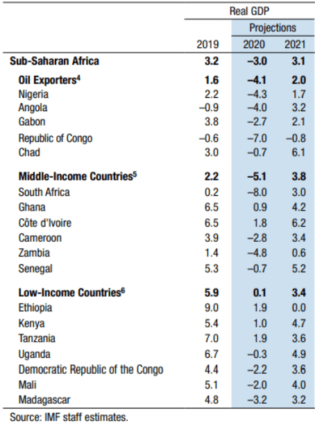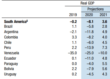 Los países exportadores de petróleo, al igual que en el oeste de Asia y el norte de África, serán los más afectados para el Fondo, debido al derrumbe inicial del precio internacional del crudo: un -4,1% en 2020 y un 2% en 2021. Los países de ingresos medios también tienen perspectivas magras, como Sudáfrica (-8% en 2020 y +3% en 2021).