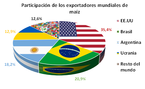 En la campaña 2020/21, Argentina tendría la tercer mayor cosecha de maíz de su historia (58 millones de toneladas), generando un saldo exportable de aproximadamente 34 millones de toneladas, lo cual le permitiría ubicarse en el tercer puesto en las exportaciones mundiales precedido por Estados Unidos y Brasil. Al desagregar la producción de estos tres países por división administrativa (estados y provincias), se cuenta con un total de 74 divisiones productoras de maíz que conjuntamente representan casi un 75% de las exportaciones mundiales, según datos del Departamento de Agricultura de los Estados Unidos (USDA).
