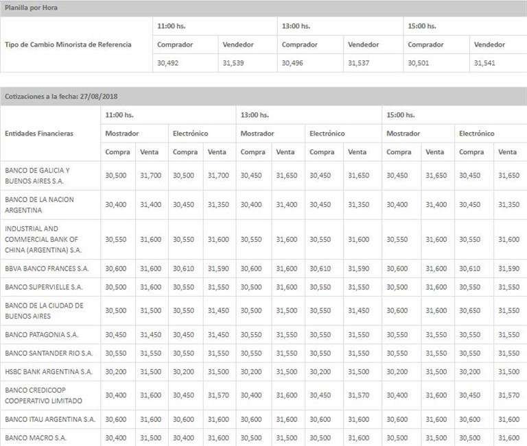 La cotización para la compra se movió en la franja de entre $ 31,40 y $ 30,61 mientras que para la venta se ubicó entre los $ 31,50 y los $ 31,65.