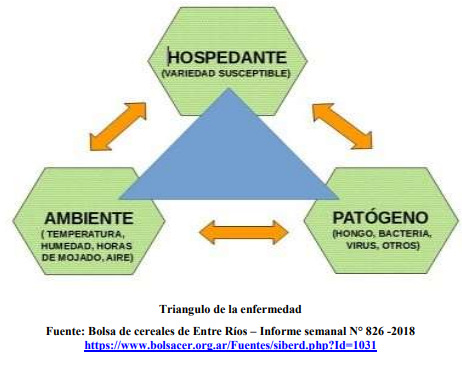 Tal vez sea el primer punto a considerar. El monitoreo periódico, programado y que cubra al menos el 10 % de las plantas del lote es fundamental para determinar la necesidad o no de la aplicación en todo el lote o solo de focos localizados. Es importante considerar la interacción entre Enfermedad/Plaga – Susceptibilidad del cultivo – Condiciones ambientes predisponentes, comúnmente denominado el triángulo de la enfermedad/plaga. Se tiene que dar la interacción de estos tres factores para que la plaga/enfermedad prospere. Si no existe inoculo de la enfermedad o presencia de la plaga en el lote, no se producirán infecciones aunque las condiciones ambientales sean las apropiadas y el cultivo (fruta/follaje) este susceptible, de la misma manera si existiera el inoculo, tejido susceptible pero no se dan las condiciones ambientales apropiadas la infección no prosperará o el grado de infección será menor (ocurre con la cancrosis en condiciones de falta de lluvias).