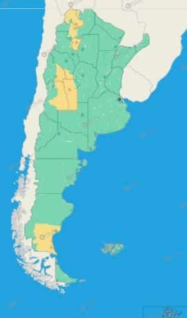 Tucumán: Burruyacú – Capital – Cruz Alta – Famaillá – Graneros – La Cocha – Leales – Simoca – Trancas – Yerba Buena – Zonas bajas de Chicligasta – Zonas bajas de Juan Bautista Alberdi – Zonas bajas de Lules – Zonas bajas de Monteros – Zonas bajas de Río Chico – Zonas bajas de Tafí Viejo – Zona montañosa de Andalgalá – Zona montañosa de Santa María – Zona montañosa de Chicligasta – Zona montañosa de Juan Bautista Alberdi – Zona montañosa de Lules – Zona montañosa de Monteros – Zona montañosa de Río Chico – Zona montañosa de Tafí Viejo – Zona montañosa de Tafí del Valle – Valles de Santa María – Valles de Tafí del Valle
