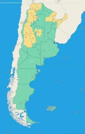 Tucumán: Burruyacú – Capital – Cruz Alta – Famaillá – Graneros – La Cocha – Leales – Simoca – Trancas – Yerba Buena – Zonas bajas de Chicligasta – Zonas bajas de Juan Bautista Alberdi – Zonas bajas de Lules – Zonas bajas de Monteros – Zonas bajas de Río Chico – Zonas bajas de Tafí Viejo – Zona montañosa de Chicligasta – Zona montañosa de Juan Bautista Alberdi – Zona montañosa de Lules – Zona montañosa de Monteros – Zona montañosa de Río Chico – Zona montañosa de Tafí Viejo – Zona montañosa de Tafí del Valle – Zona montañosa de Andalgalá – Zona montañosa de Santa María – Valles de Santa María – Valles de Tafí del Valle