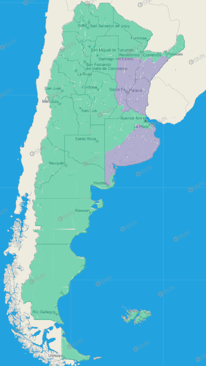Buenos Aires: Este de Castelli – Este de Chascomús – Este de Dolores – Este de Lezama – Este de Magdalena – Este de Punta Indio – Este de Tordillo – Oeste de Castelli – Oeste de Chascomús – Oeste de Dolores – Oeste de General Lavalle – Oeste de Lezama – Oeste de Punta Indio – Oeste de Tordillo – Pila – Alberti – Bragado – Chivilcoy – General Viamonte – Nueve de Julio – Veinticinco de Mayo – General Alvear – General Belgrano – General Paz – Las Flores – Lobos – Monte – Navarro – Roque Pérez – Saladillo – Este de General Lavalle – La Costa – Pinamar – Sudeste de General Juan Madariaga – Villa Gesell – Ayacucho – Balcarce – General Guido – Maipú – Noroeste de General Juan Madariaga – Noroeste de Mar Chiquita – Oeste de General Pueyrredón – Costa de General Pueyrredón – Costa de Mar Chiquita – General Alvarado – General La Madrid – Laprida – Olavarría -Azul – Rauch – Tapalqué – Zona baja de Benito Juárez – Zona baja de Tandil – Costa de Lobería – Costa de Necochea – Costa de San Cayetano – Costa de Tres Arroyos – Adolfo Gonzales Chaves – Centro de Lobería – Norte de Coronel Dorrego – Norte de Necochea – Norte de San Cayetano – Norte de Tres Arroyos – Costa de Bahía Blanca – Costa de Coronel Dorrego – Costa de Coronel de Marina Leonardo Rosales – Costa de Villarino – Monte Hermoso – Norte de Bahía Blanca – Oeste de Patagones – Oeste de Villarino – Puan – Zona baja de Coronel Pringles – Zona baja de Coronel Suárez – Zona baja de Saavedra – Zona baja de Tornquist