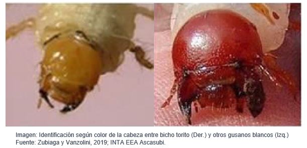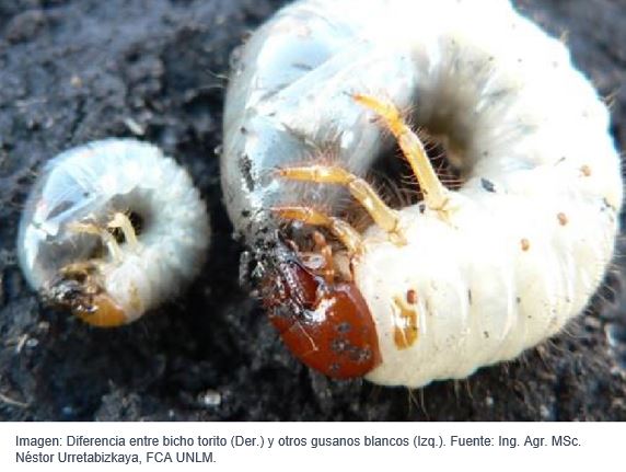 Existen tres características prácticas de identificación a campo. Por un lado, el tamaño de la larva. Desde mayo a octubre, las larvas de bicho torito miden más de 5 cm, mientras que las de otras especies son más pequeñas (menos de 3,5 cm).