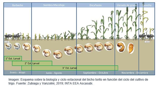 Estos insectos, en bajas densidades son benéficos ya que mejoran las propiedades físicas del suelo y favorecen la descomposición de residuos orgánicos. Sin embargo, cuando las poblaciones aumentan, afectan la implantación de cultivos invernales, ya que se alimentan de sus semillas, raíces y plántulas. Si bien el trigo es el cultivo más afectado, la plaga también incide sobre centeno, cebada, avena, triticale, arveja y lenteja. Por ello, es fundamental el monitoreo en pre-siembra, con especial atención en suelos no perturbados o que salen de una pastura, donde la incidencia es mayor.