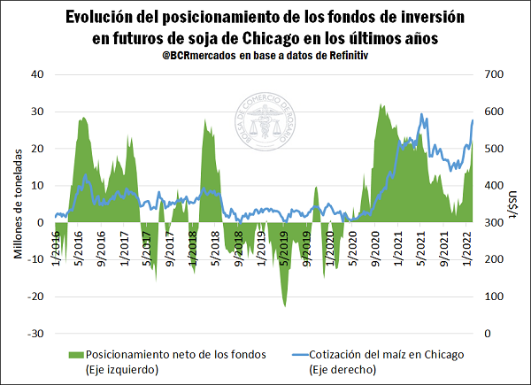 En conclusión, bajo el análisis de posicionamiento de los fondos inversores de EE. UU. se puede afirmar que los mercados de los granos gruesos cuentan con fuerte convicción alcista entre sus agentes, al tiempo que la sequía sudamericana y la tensión en la Región del Mar Negro ofician de soporte para las cotizaciones de estos commodities.