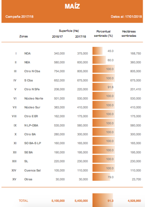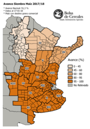 Desde nuestro informe previo, la siembra de cuadros de maíz con destino grano comercial continuó en el norte del área agrícola nacional. La incorporación de lotes tardíos y de segunda ocupación culminó en las provincias de Bs. As, Córdoba, La Pampa y San Luis, restando solo incorporar cuadros puntuales que no modificarían nuestra actual proyección. Gran parte de la superficie remanente de siembra se concentra en las regiones del NOA y NEA, en donde aún resta incorporar unas 450.000 Ha. Por otro lado, los lotes tempranos continúan llenando granos, relevándose los más adelantados en la región Centro-Norte de Santa Fe.