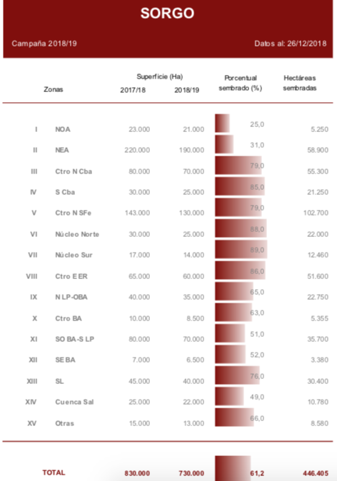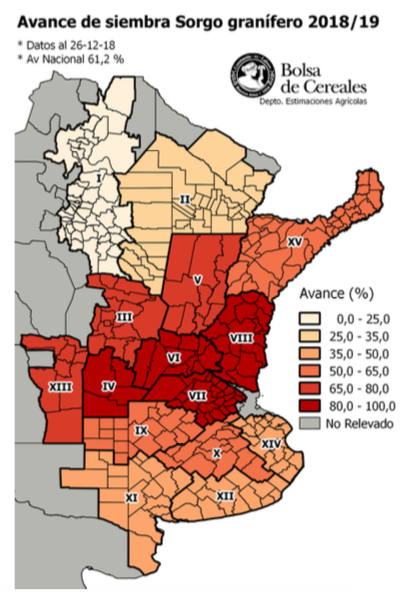 Desde nuestro informe previo, las condiciones del tiempo han permitido que la incorporación de cuadros de sorgo granífero se extendiera en gran parte del país, registrando los mayores avances en las provincias de Chaco, Córdoba, Santa Fe y Buenos Aires.