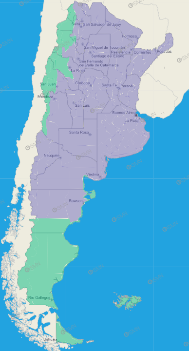 Buenos Aires, CABA, Catamarca, Chaco, Chubut, Córdoba, Corrientes, Entre Ríos, Formosa, Jujuy, La Pampa, La Rioja, Mendoza, Neuquén, Río Negro, Salta, San Juan, San Luis, Santa Fe, Santiago del Estero, Tucumán.