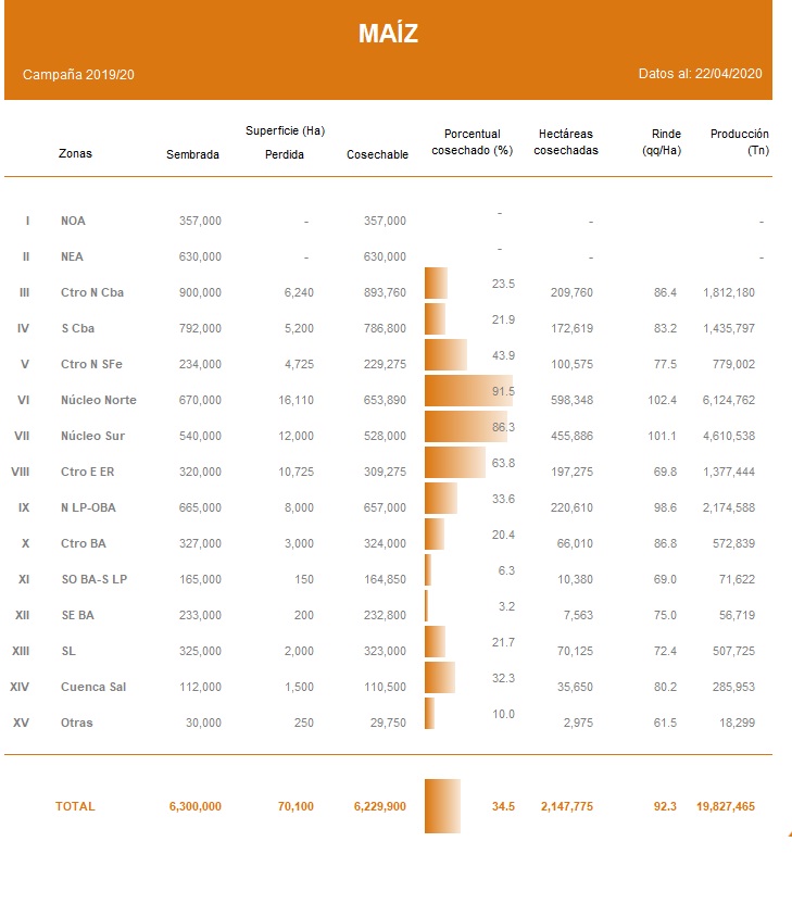 Hacia las zonas Oeste de Buenos Aires-Norte de La Pampa, Cuenca del Salado y el Centro de Buenos Aires la cosecha de cuadros tempranos brinda muy buenos rendimientos. En el Sur del área agrícola nacional se relevan las primeras cosechas del cereal, las cuales brindan rindes cercanos a los promedios regionales.