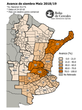 La siembra de lotes tempranos en la provincia de Córdoba se encuentra próxima a finalizar, solo restando incorporar lotes puntuales en los departamentos del sur provincial. Hacia las zonas Centro-Norte de Santa Fe y Centro-Este de Entre Ríos, los cuadros tempranos diferencian hojas bajo buenas reservas hídricas. A la fecha se reportan daños parciales por caída de granizo y presencia de gusano cogollero.