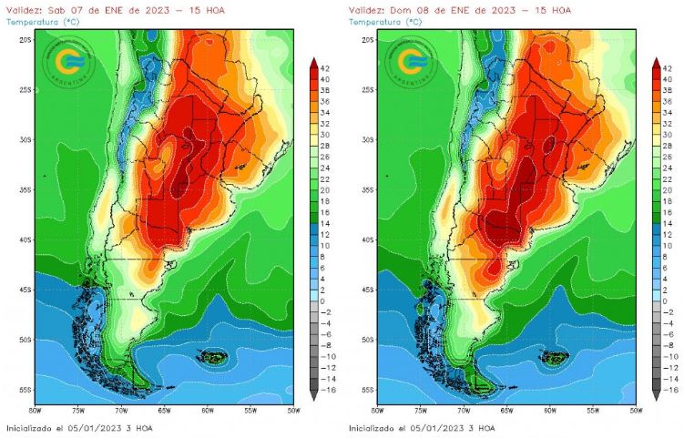 Bolsa de Cereales de Buenos Aires. El informe semanal de la entidad porteña señala que “la primera etapa de la perspectiva, que abarca el período iniciado ayer jueves y hasta el próximo miércoles 11 de enero, comenzará con vientos del Trópico, elevando las temperaturas por encima de lo normal, en el norte y el extremo sudoeste del área agrícola, mientras el sur y el litoral atlántico recibirán vientos marinos, que moderarán los registros térmicos”.