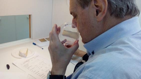 Ruiz Rivera dijo que los quesos camembert presentan su óptimo sensorial aproximadamente a los 45 días desde su elaboración. “Eso se determina a través del análisis sensorial, que es una disciplina científica que observa, mide, examina e interpreta cómo los cinco sentidos perciben determinadas características de un bien o servicio. Los paneles sensoriales, como los que contribuyeron a mi tesis, están integrados por personas entrenadas para realizar las pruebas y que describen los productos por medio de un conjunto de atributos. A partir de esos datos, se construye lo que se llama un perfil sensorial”.