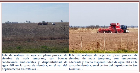 La zona que acusó los mayores registros fue el sector centro de los departamentos del área de estudio. Dicha realidad reforzó las óptimas condiciones con que comenzó la nueva campaña de cosecha gruesa, mientras avanzó el desarrollo de la cosecha fina. Condiciones climáticas que interrumpieron los movimientos de equipos y sembradoras en cultivos de girasol y de maíz temprano (de primera). Situación que en los próximos días se revertiría.