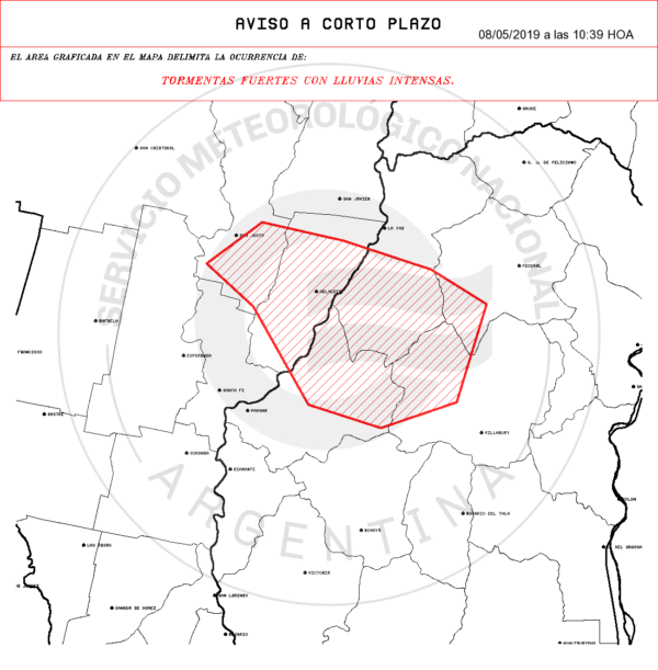 Aviso Meteorológico a Muy Corto Plazo N° 582
