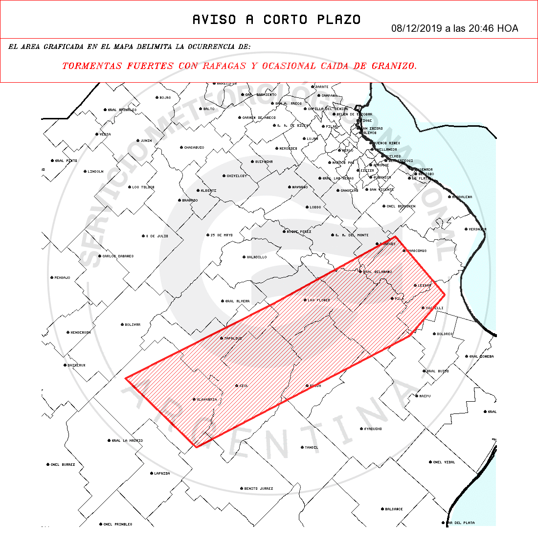 - Zonas: BUENOS AIRES: Ayacucho – Azul – Castelli – Chascomus – Dolores – Gral Belgrano – Gral Guido – Gral Paz – Las Flores – Lezama – Olavarria – Pila – Rauch – S. M. del Monte – Tapalque.
