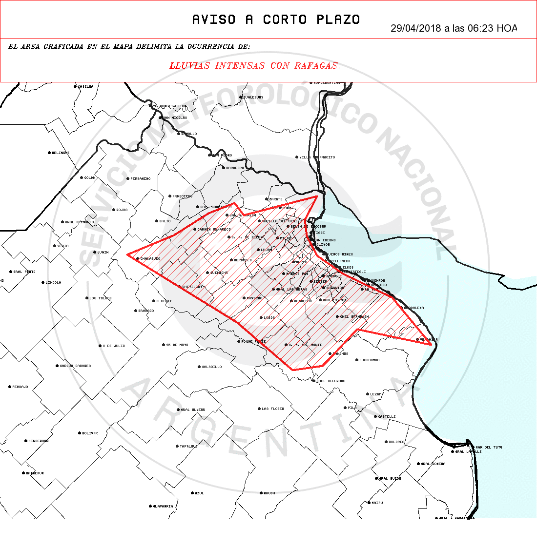 Aviso Meteorológico a Muy Corto Plazo N° 601