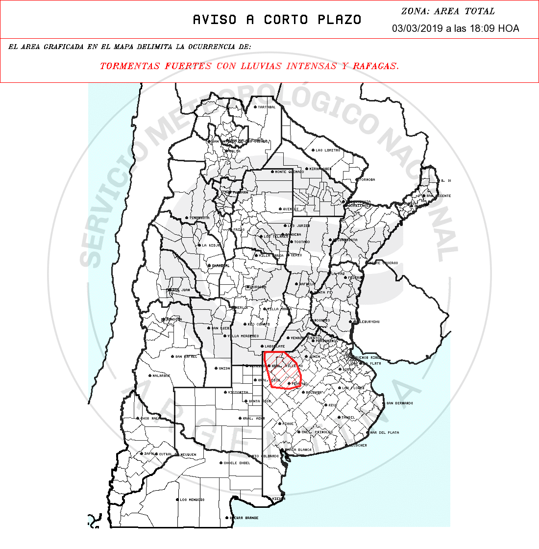 POR OCURRENCIA DE:  TORMENTAS FUERTES CON LLUVIAS INTENSAS Y RAFAGAS.