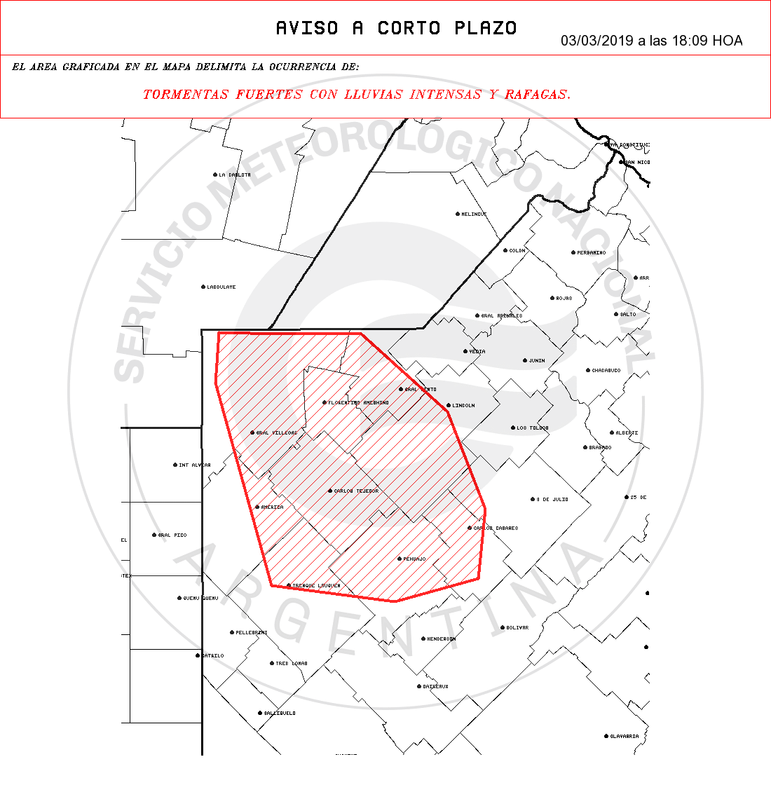 Aviso Meteorológico a Muy Corto Plazo N° 423
