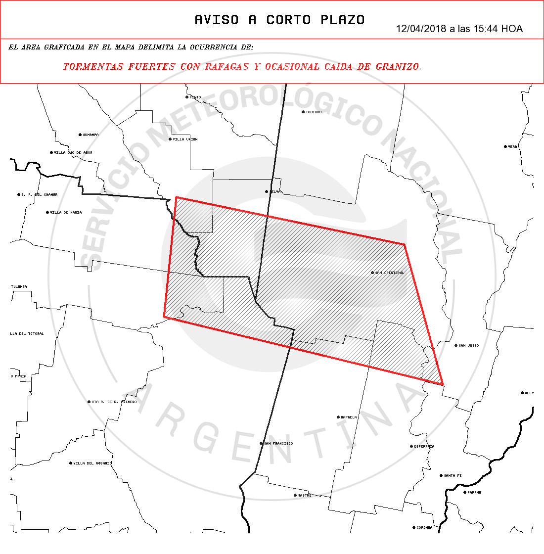 POR OCURRENCIA DE: TORMENTAS FUERTES CON RAFAGAS Y OCASIONAL CAIDA DE GRANIZO.