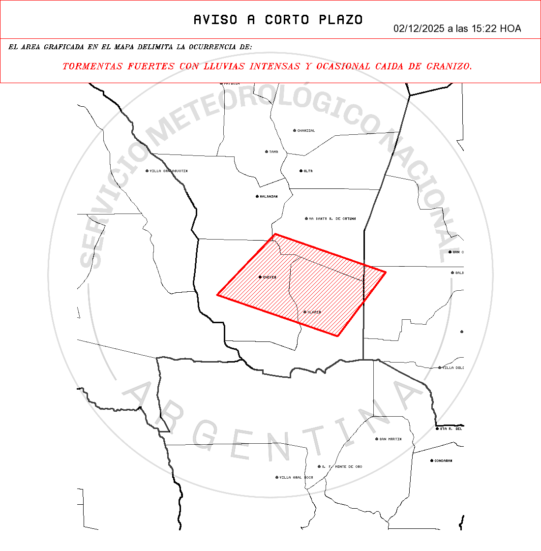 ¡AVISO METEOROLÓGICO! Tormentas fuertes con lluvias intensas y caída de granizo