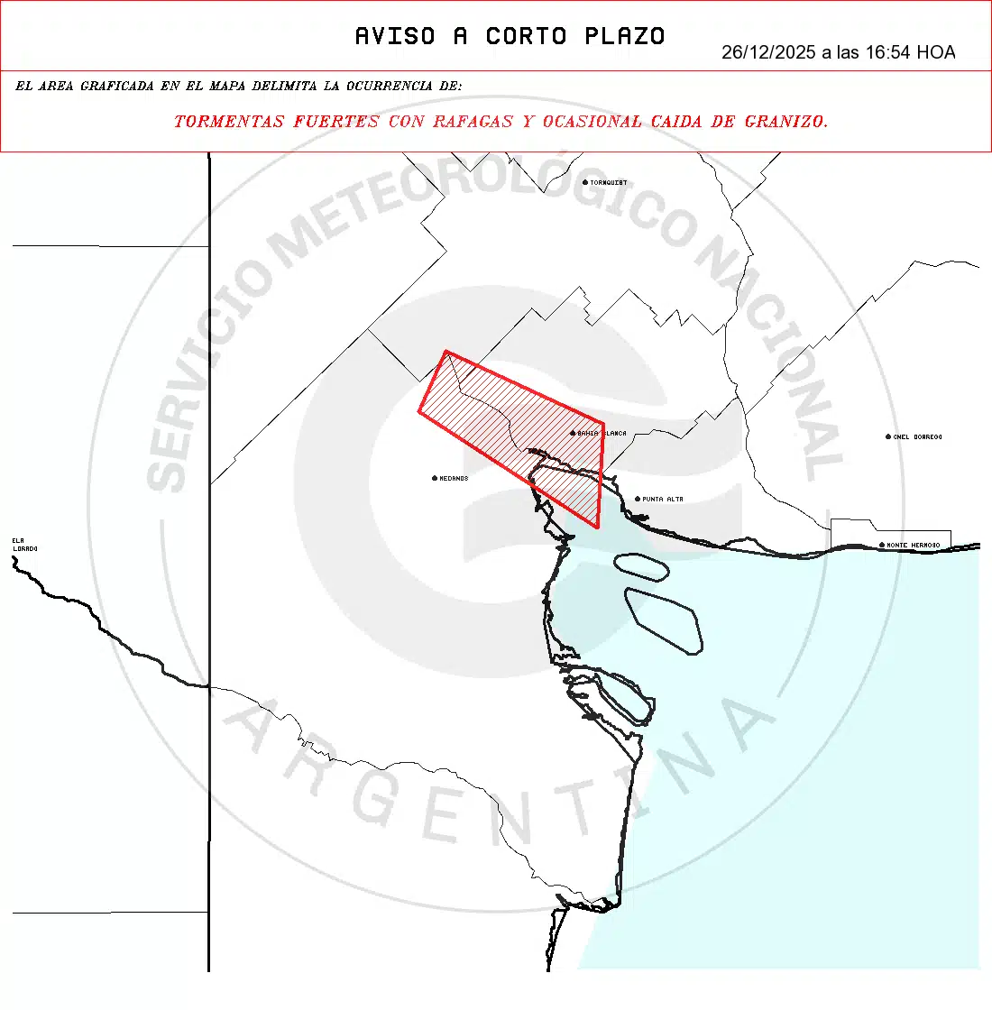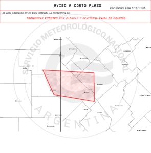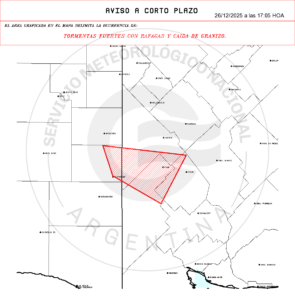 Avisos Meteorológicos en tres provincias por tormentas fuertes con ráfagas y granizo