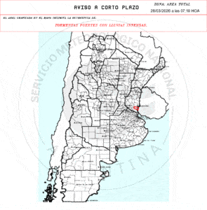 Tormentas intensas con núcleos de lluvia sobre regiones productivas del centro del país, con impacto en el campo argentino