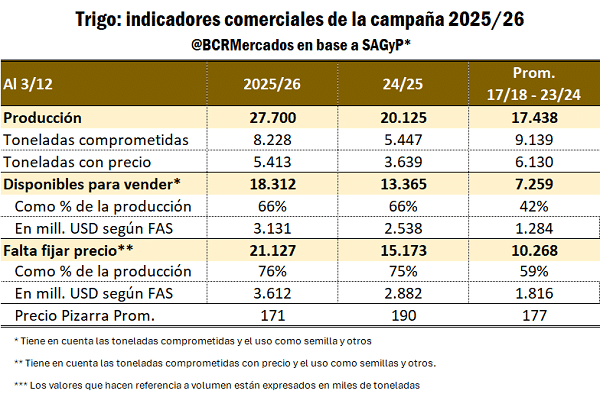 El trigo es el caso más sensible, ya que la nueva campaña llega con un volumen récord de 27,7 millones de toneladas, lo que implica que el impacto de la baja de retenciones será amplio en las operaciones que recién comienzan.