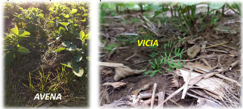 Sobre los cultivos estivales, puntualmente la soja, en Bandera se observan nacimientos de cultivos de servicios, avena y vicia, proveniente de resiembra natural. Zaiser explica que estos cultivos cuando crecen en forma temprana, en periodo vegetativo, compiten con la soja por recursos, en mayor tasa de crecimiento, la avena.