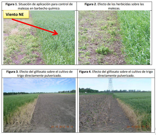 Fue entonces cuando aparecieron los daños parciales o totales sobre el trigo, dada su alta sensibilidad al herbicida. Por lo tanto, los pulverizadores terrestres también trabajaban con deriva.