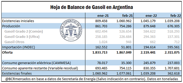 Nota 2: Las importaciones de gasoil llegaron a su máximo histórico para el mes de febrero de 2022