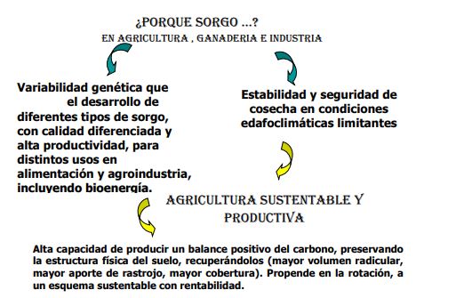 La expansión de la agricultura liderada por el cultivo de soja, ha conducido a una mayor utilización de áreas marginales con limitantes edafoclimáticas importantes, tanto para la agricultura como la ganadería, resultando en sistemas productivos de baja sustentabilidad. Si a estos aspectos se adiciona los cambios climáticos, se origina una mayor incertidumbre de los resultados de la actividad agrícola y ganadera, fundamentalmente por mayor frecuencia e intensidad de la ocurrencia de estreses bióticos y abióticos, (deficiencias hídricas o excesos). Esta situación/factores, han convertido al cultivo de sorgo, en una alternativa interesante a considerar en los distintos sistemas de producción de carne y leche, especialmente en ambientes más limitados para la producción agrícola. Además del rol importante en la producción agropecuaria por sus múltiples usos y como recuperador del suelo; el cultivo de sorgo en los últimos años ha cobrado importancia como cultivo energético, por la posibilidad de ser utilizado en la producción de bioenergía (biogas, bioetanol), favoreciendo Economías Regionales.