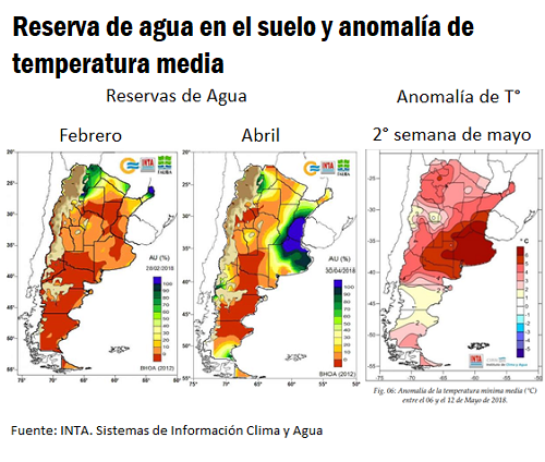 Los siguientes mapas muestran las escasas reservas de agua en el suelo durante el mes febrero cuando el cultivo necesitaba agua y como se revirtieron en abril en el periodo de cosecha donde se necesitan condiciones secas.