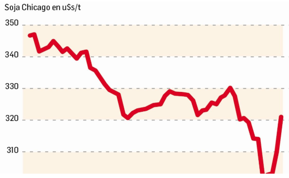 Durante la rueda de ayer, el precio de la soja volvió a cerrar en alza. La tonelada en el mercado internacional cerró a u$ 324,46 un 2,5% más que el viernes (u$s 316,92). En lo que va del año, el valor del commodity tuvo fluctuaciones propias de un contexto volátil. Por ejemplo, pasó de u$s347,12 el 3 de enero (su valor más alto desde mediados de 2018), a u$s301,65 el 17 de marzo (la cotización más baja de los últimos diez meses): es decir, registró una caída del 13,25%. Desde entonces, recuperó parte de lo perdido: + 7,3%.