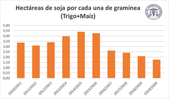 Hace 5 años por cada lote de trigo o maíz había 4,4 lotes de soja. En el 2019/2020 la relación bajaría a solo 1,75.