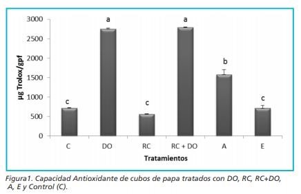 Los cubos de papas tratados con Deshidratación Osmótica, Recubrimiento Comestible + Deshidratación Osmótica y Antioxidantes tienen una mejor calidad nutricional que las muestras tratadas con Escaldado, Recubrimiento Comestible y las muestras control, presentando una mayor capacidad antioxidante, sin variación en el color de los cubos de papa.