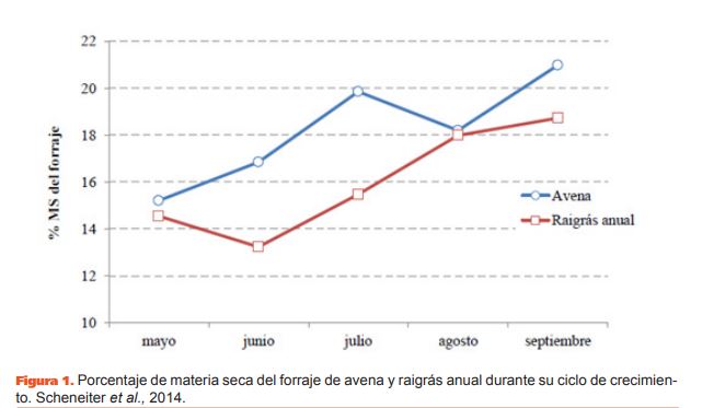 El bache estacional de producción de forraje invernal se hizo más evidente, en los sistemas mixtos agrícolo-ganaderos, a partir del incremento del área dedicada a la agricultura, con el consecuente aumento de la carga global en la ganadería. En este contexto es que los cultivos anuales de invierno son los recursos forrajeros más utilizados, ya que aportan entre mayo y septiembre una producción de forraje de 4 a 9 t materia seca (MS). ha-1 de alta calidad.