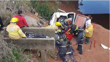 El accidente se produjo en el kilómetro 131, cuando el conductor perdió el control del camión y rompiendo la baranda de defensa del puente cayó en el afluente de los padres.