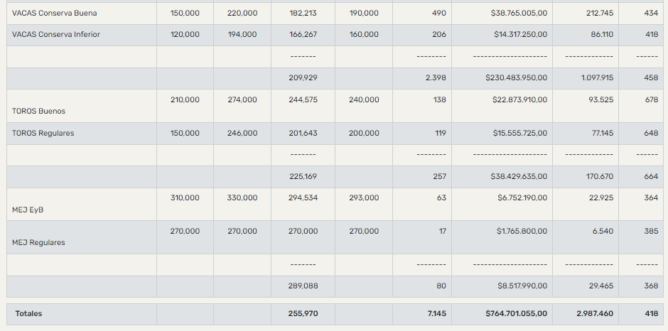 PRECIOS DEFINITIVOS POR CATEGORIA EL MIÉRCOLES 23/11/2022