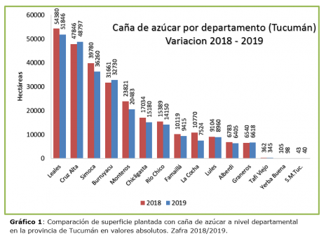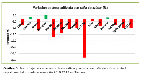 Los datos obtenidos muestran una importante caída del 5,4% respecto del año pasado, lo que representa 14.886 ha menos de caña de azúcar para cosechar en la provincia. Sólo tres departamentos incrementaron su superficie, mientras los otros tuvieron disminuciones en diferentes grados.