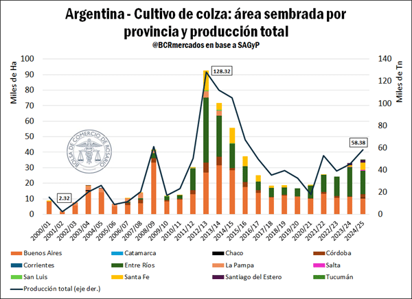 A nivel nacional, se estima que las oleaginosas invernales alcanzaron unas 170.000 hectáreas en 2025, muy por encima de las cerca de 30.000 hectáreas registradas apenas tres años atrás.